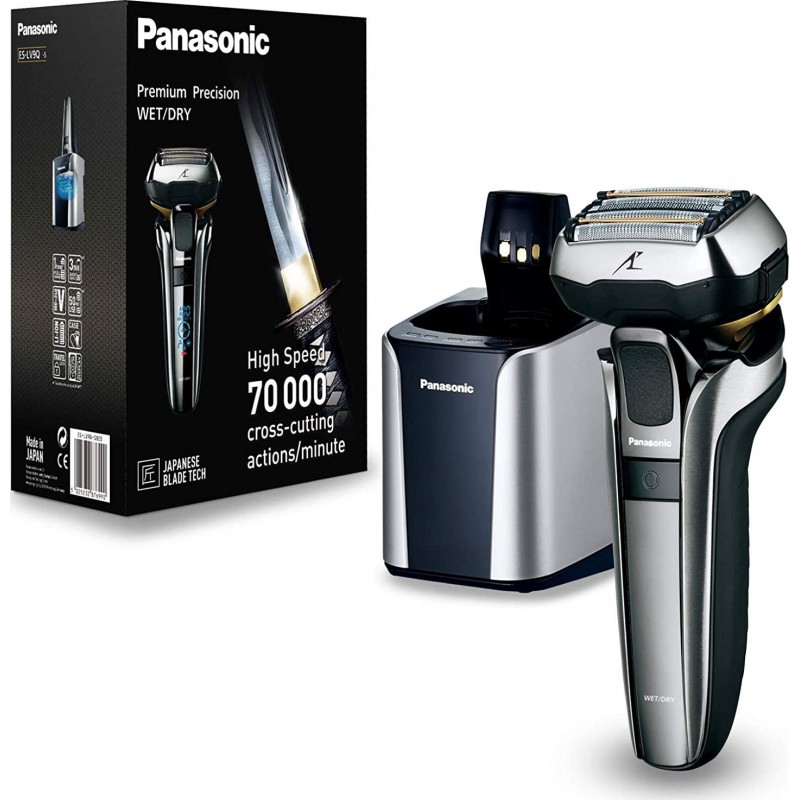 Le nouveau rasoir ES-LV9Q est équipé de 5 lames pour encore plus de précision et de confort. Sa nouvelle tête 5D Multi-Flex épouse parfaitement tous les contours du visage quelque soit sa forme. Le Panasonic ES-LV9Q rasoir électrique intègre la nouvelle grille de finition en forme de trapèzes inversés et le nouveau design des lames. Elle a été spécialement conçue pour capturer et couper jusqu’à 200% de poils en plus. Le rasoir électrique ES-LV9Q est aussi doté du « Smart Lock Function » qui permet d’activer ou désactiver la fonction verrouillage du rasoir quand vous le prenez en main. Son moteur linéaire de 70 000 tours par minute (5 lames de 14 000 T/min) combiné au capteur automatique de barbe garantit une puissance maximale et constante. Produit neuf dans son emballage d'origine bénéficiant de la garantie originale du fabricant. EAN 5025232876990.